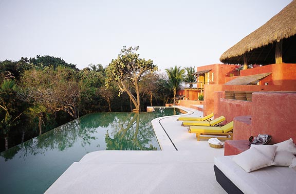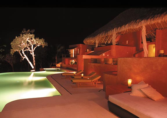Featuring a masterful design by renowned Italian builder Gian Franco Brignone, Casa La Huerta (The Orchard) takes advantage of the finest views, breezes, and maximum seclusion. The residence encompasses a main Living Room with a traditional Palapa (roof of dried palm leaves) and sweeping panoramic views of the coastline. A Dining Room with a lazy-susan round table seats 12. Five Bedrooms, six Baths including a Master Bedroom with its own Living Room, Terrace, king-size bed, and Master Bath with marble tub. There are an additional two staff bedrooms. Casa La Huerta gives the feeling of a truly grand Mexican coastal estate. The wide Infinity Pool area includes lights, a heated Jacuzzi and cascade, Sundecks, a shower, and a magnificent view.
