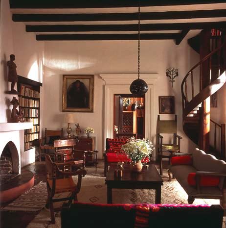 El Jacarandal, built around 1850, restored and expanded in 1972 in a neo-colonial style, is an enchanting town house which encloses patios and loggias but opens to staggering views of the surrounding green mountains. High walls covered by flowering vines enclose terraced English gardens. Four double bedrooms all have views of the tiled roofs of the colonial town and the domes of the 16th and 17th century churches below. There are 2 living rooms, a library, a tiled kitchen and a dining room. It has high beamed ceilings, 6 bedrooms, 5 1/2 bathrooms, 8 fireplaces, a hydraulic pump for level water pressure, an ultraviolet water purification system, 2 cisterns, 2 fountains, a servant’s bathroom and laundry room below the house and a small domed greenhouse. Eight Portuguese style chimneys adorn the many leveled-tiled roofs. It is 2 blocks from the daily food market and 5 blocks from the central park.